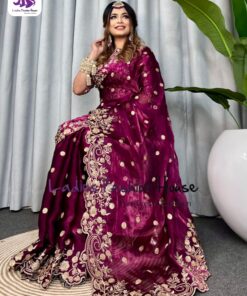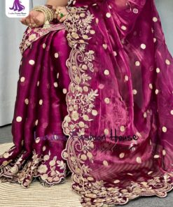 অরিজিনাল ইন্ডিয়ান জিমিচু সিল্ক পার্টি শাড়ি _রেডি ব্লাউজ সহ পার্পেল কালার