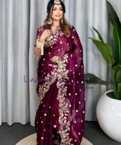 এই পারপেল কালারের শাড়ি টি ইন্ডিয়ান জিমি চু সিল্ক ফ্যাব্রিক দিয়ে তৈরী করা এবং সম্পূর্ণ শাড়ির আঁচল ও কুঁচি জুড়ে নিখুঁত চাইনিজ রেশমি সুতার এমব্রয়ডারি ও সিকোয়েন্স ওয়ার্ক এটিকে আরও আকর্ষণীয় করে তোলে এবং যেকোনো বিশেষ অনুষ্ঠানের পরিধানের জন্য উপযুক্ত।